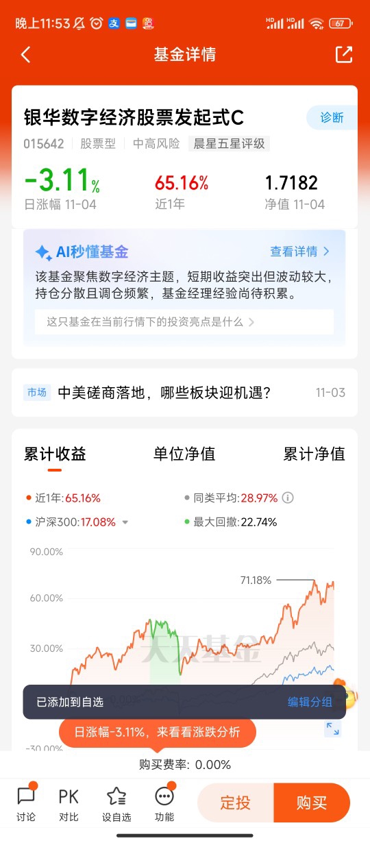 2. 组合配置:作为高成长高波动的行业主题基金,建议控制在权益仓位的10%-20%以内,与消费、金融等低相关性资产形成互补;