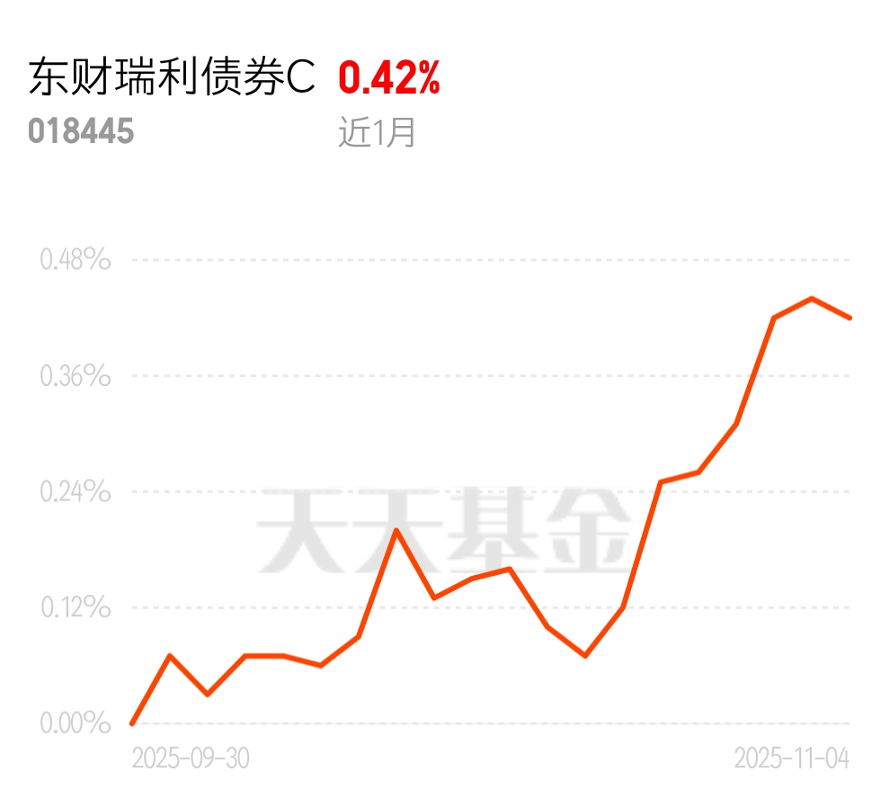 利率债热度跟着上来了,一方面是央行重启国债买卖,另一方面机构在为跨年做准备。这时候选西藏东财瑞利债券C刚好,近1个月赚了0.42%,稳健属性拉满,还7免、支持转换。 $东财瑞利债券C$
