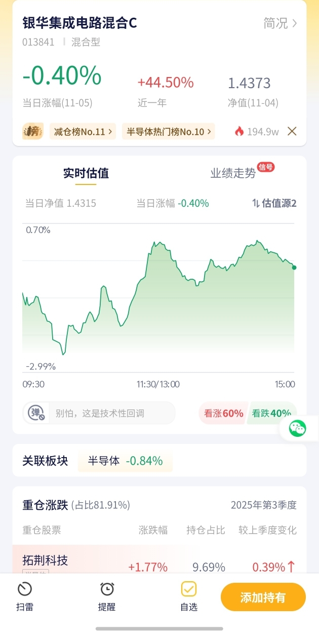 7. 【银华集成电路混合C估值播报+11.05行情】