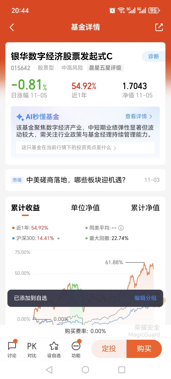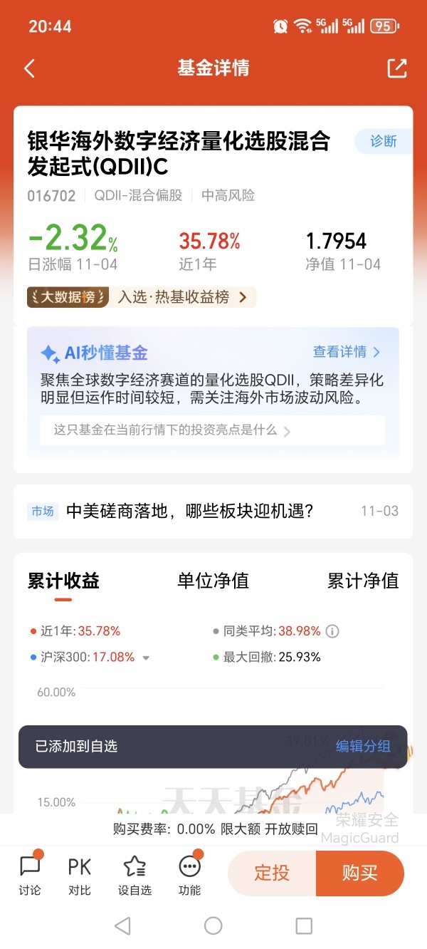#10月你看好哪些投资赛道?# A.我更看好科技成长赛道。全球供应链安全需求与区域化博弈倒逼自主可控提速,国内企业在刻蚀、清洗等设备领域突破显著,12英寸硅片、抛光液等材料国产化率持续提升,资本向硬科技聚集,产业基金助力技术成果转化,行业中长期成长确定性极强。算力作为数字经济的底座,受益于大模型训练推理的算力消耗指数级上升,叠加东数西算工程落地,液冷、光模块等细分领域率先放量,行业从周期成长转向结构性牛市,投资窗口明确。我相信集成电路产业的长期成长逻辑没有改变。无论是数字经济还是智能驾驶,都离不开芯片的支撑。银华基金在这方面的投研积累深厚,方建经理的组合既布局了确定性较高的设备龙头,也关注AI算力等新兴方向。对于普通投资者,建议用闲钱定投,保持耐心,陪伴优秀企业共同成长。国产芯片的崛起之路虽然曲折,但前景值得期待。我认为银华数字经济基金是参与科技成长板块的优质工具。该基金近一年年化波动率约25%,属于中高风险产品,适合能承受短期波动、投资周期设定在一年以上的投资者。建议采用定投或分批买入的方式参与,以平滑净值波动,并控制其在总投资组合中的比例,同时搭配一些稳健型资产以平衡风险。基金经理王晓川与投资者利益绑定较深,其管理的浮动费率基金也体现了“共担风险、共享收益”的原则,进一步增强了持有信心。