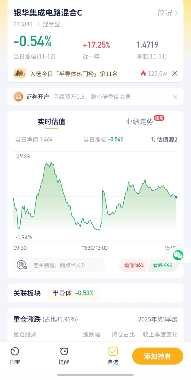 6. 【银华集成电路混合C估值播报+11.12行情】