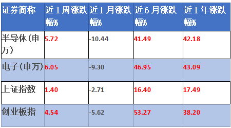 上周申万半导体指数跑赢上证指数4.32%个百分点,半导体板块整体表现优于大盘。