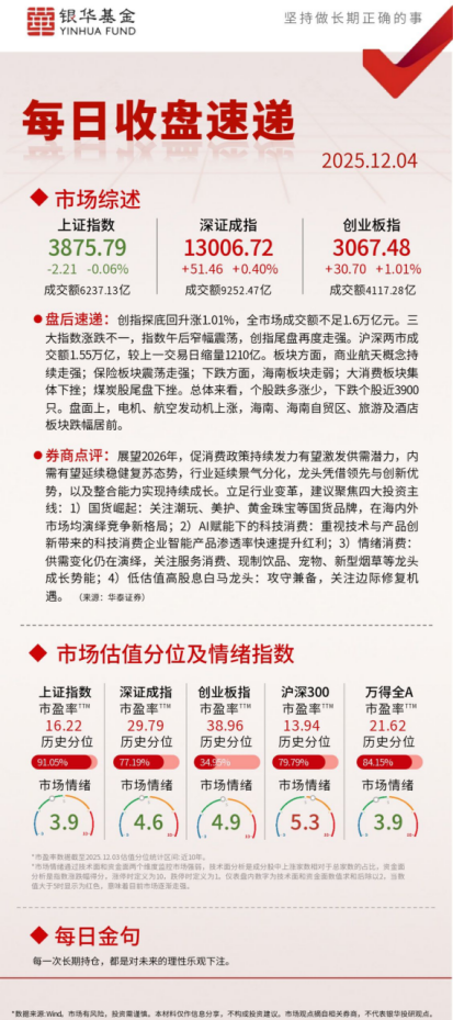 每日收盘速递 | 2025.12.4 创指探底回升涨1.01%