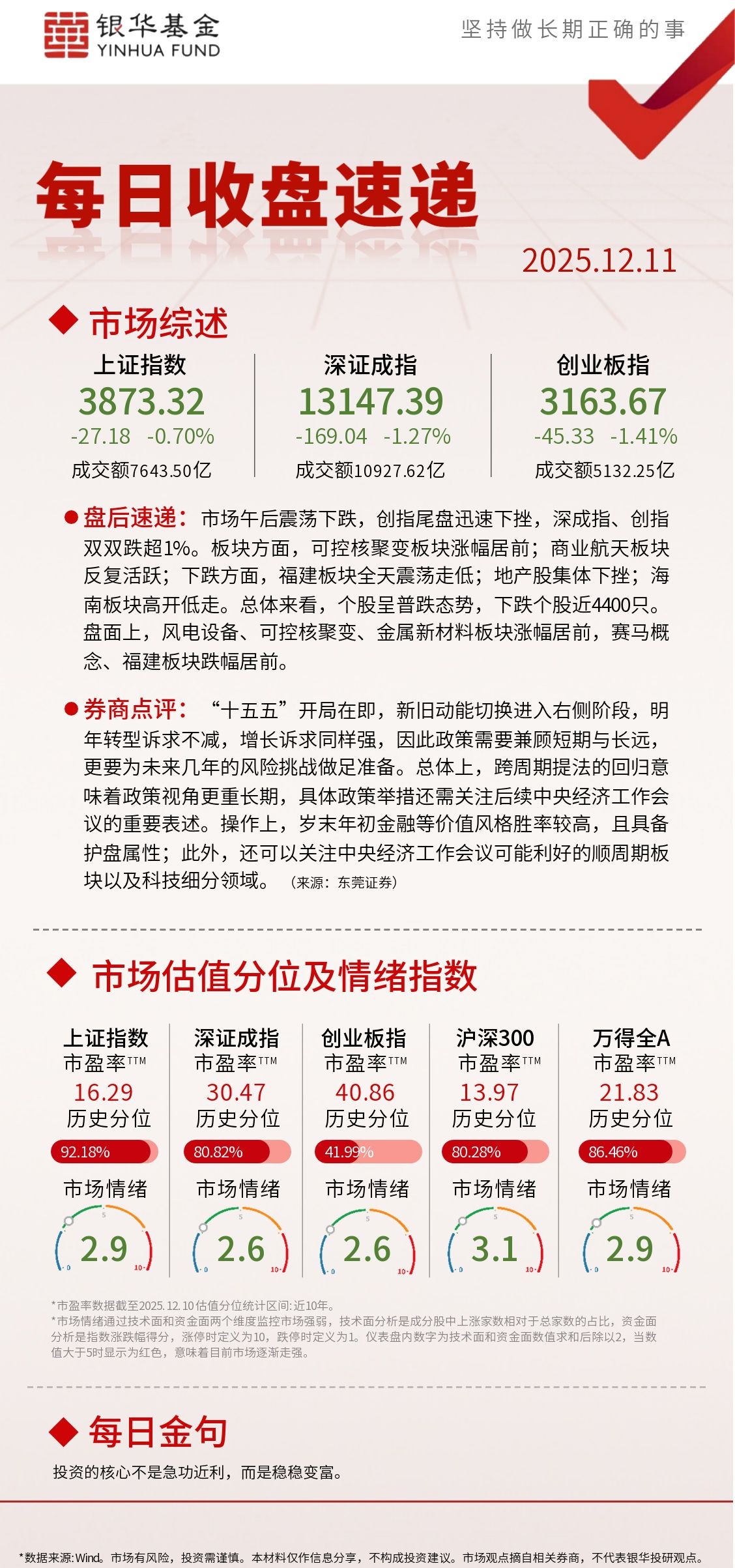 每日收盘速递 | 2025.12.11 市场午后震荡下跌,创指尾盘迅速下挫