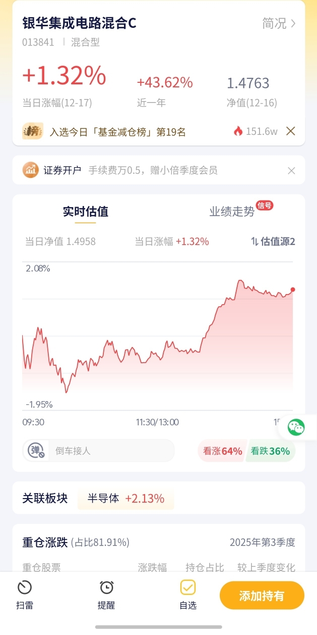 7. 【银华集成电路混合C估值播报+12.17行情】