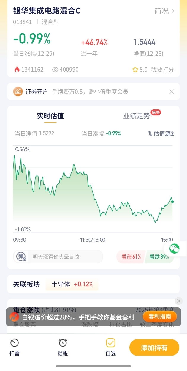7.【银华集成电路混合C估值播报+12.29行情】
