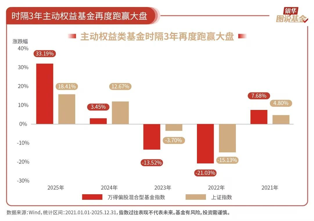 10、14.78%:主动权益基金跑赢沪指,超额收益达14.78%。2025年,全年偏股混合基金指数收益达33.19%,同期上证指数涨幅18.41%,超额收益能力时隔三年回归。