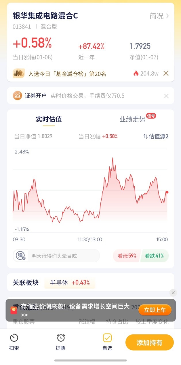 我持有的银华集成电路基金今日上涨