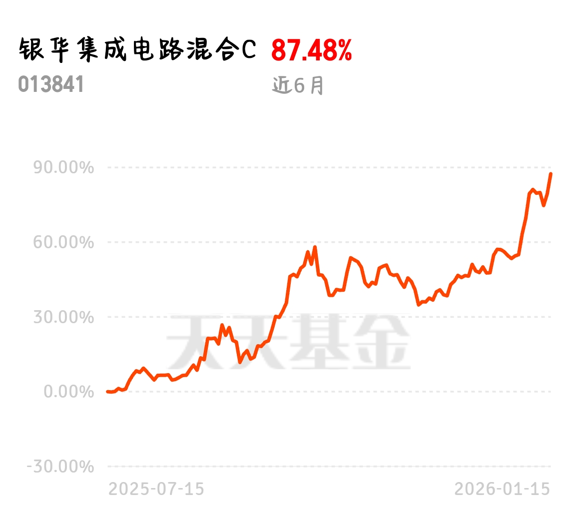 AI 数据中心扩张速度超预期,存储芯片需求量激增,行业进入量价齐升阶段。银华集成电路混合 C 近 6 月涨幅 87.48%,紧跟下游需求爆发,分享半导体行业高增长红利。$银华集成电路混合C$