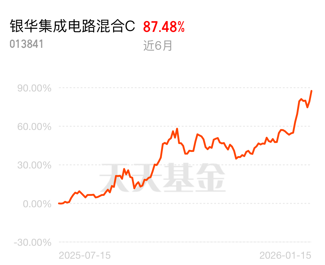 2026 年存储芯片涨价停不下来,DDR5 内存颗粒涨幅超 300%,AI 服务器需求还在猛增。银华集成电路混合 C 踩中行业风口,近 6 月涨了 87.48%,重仓国产替代主线,布局半导体优质标的超靠谱。
