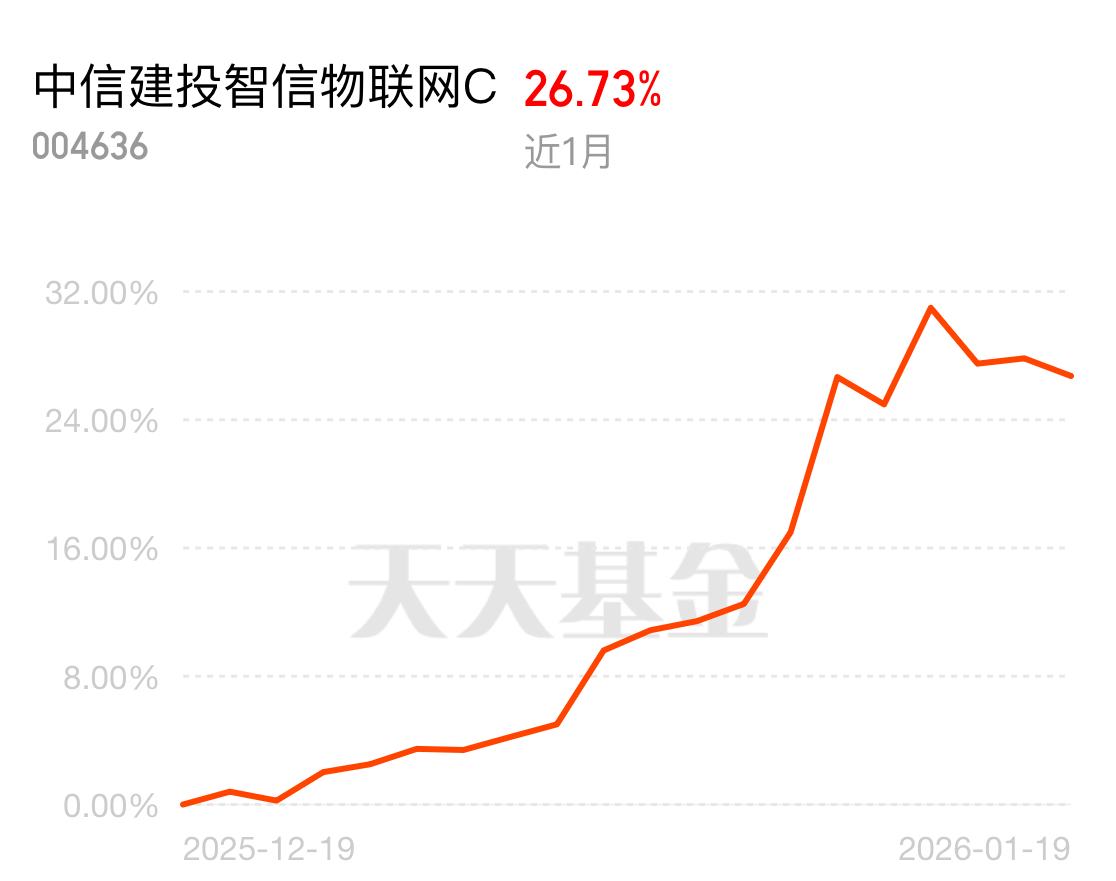 最近银华集成电路C涨得不错,也顺手看了眼一起拿的中信建投智信物联网C,近1个月涨