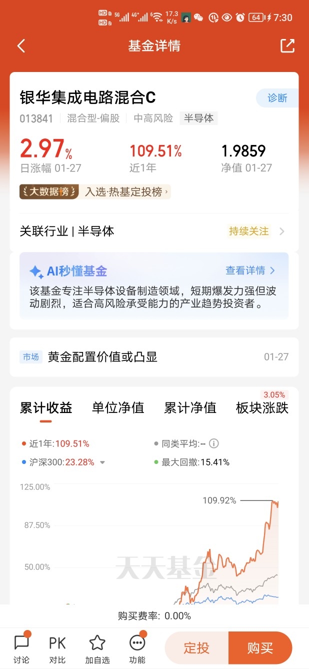 更新了,涨幅2.97%,一年业绩翻倍咯,半导体强势回归