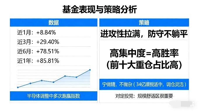 - 持仓:股票占比≈94.6%,电子板块≈81.4%,纯正集成电路+半导体