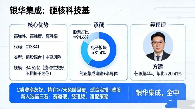 作为新人,我选基不看短期一两天,看三件事:赛道够不够硬、经理够不够稳、适配我的策略不。银华集成,全中。