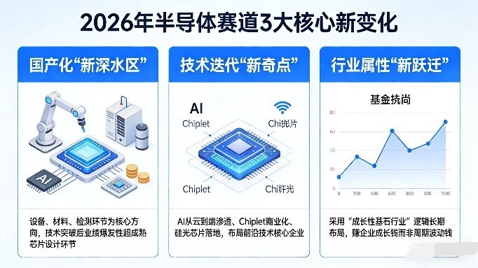 很多人问我,半导体基金那么多,这只到底有什么不一样?在我看来,它最“新”、最不可替代的地方,就在于它完全踩中了2026年半导体赛道的3个核心新变化,不是在吃过去的红利,而是在布局未来的爆发。