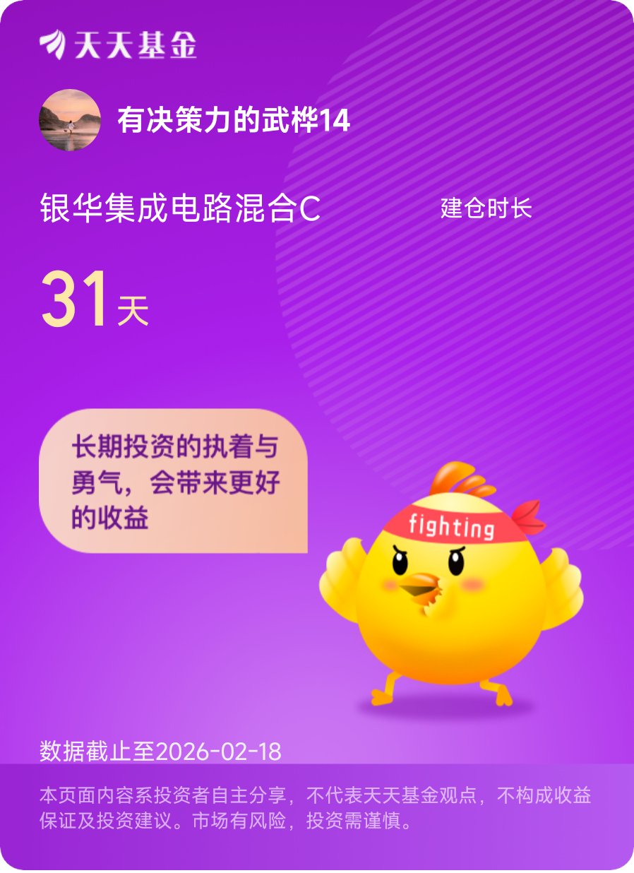 持有该基金,既能享受行业成长带来的收益弹性,又能通过基金分散投资降低风险,持有体验舒适、收益回报可观。2026年,坚守优质成长资产,以长期视角布局半导体赛道,借助银华集成电路混合C的专业力量,让春节的每一笔布局,都成为钱包增厚的坚实基石,在科技兴国的浪潮中,实现财富与时代的共同成长。#晒收益#