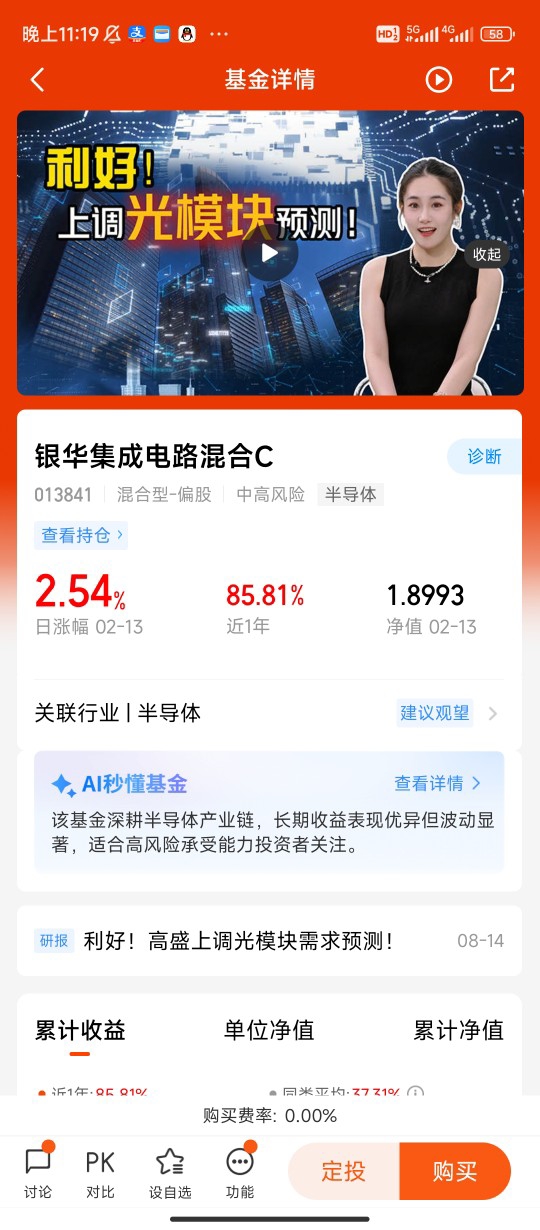 #趁春节力争“增厚”你的钱包# 投教答案A, 春节是辞旧迎新的节点,更是布局优质资产、让财富稳步增值的关键窗口。在A股市场结构性行情主导的当下,半导体赛道凭借产业周期复苏、AI算力爆发、国产替代提速三重逻辑,成为2026年最具确定性的成长主线之一。而聚焦集成电路赛道的银华集成电路混合C(013841),凭借基金经理的专业管理、精准的赛道布局与亮眼的业绩表现,成为普通投资者分享半导体行业红利、春节“增厚钱包”的优质选择。结合市场理解与真实持有体验,本文深度拆解这一核心资产的投资价值。