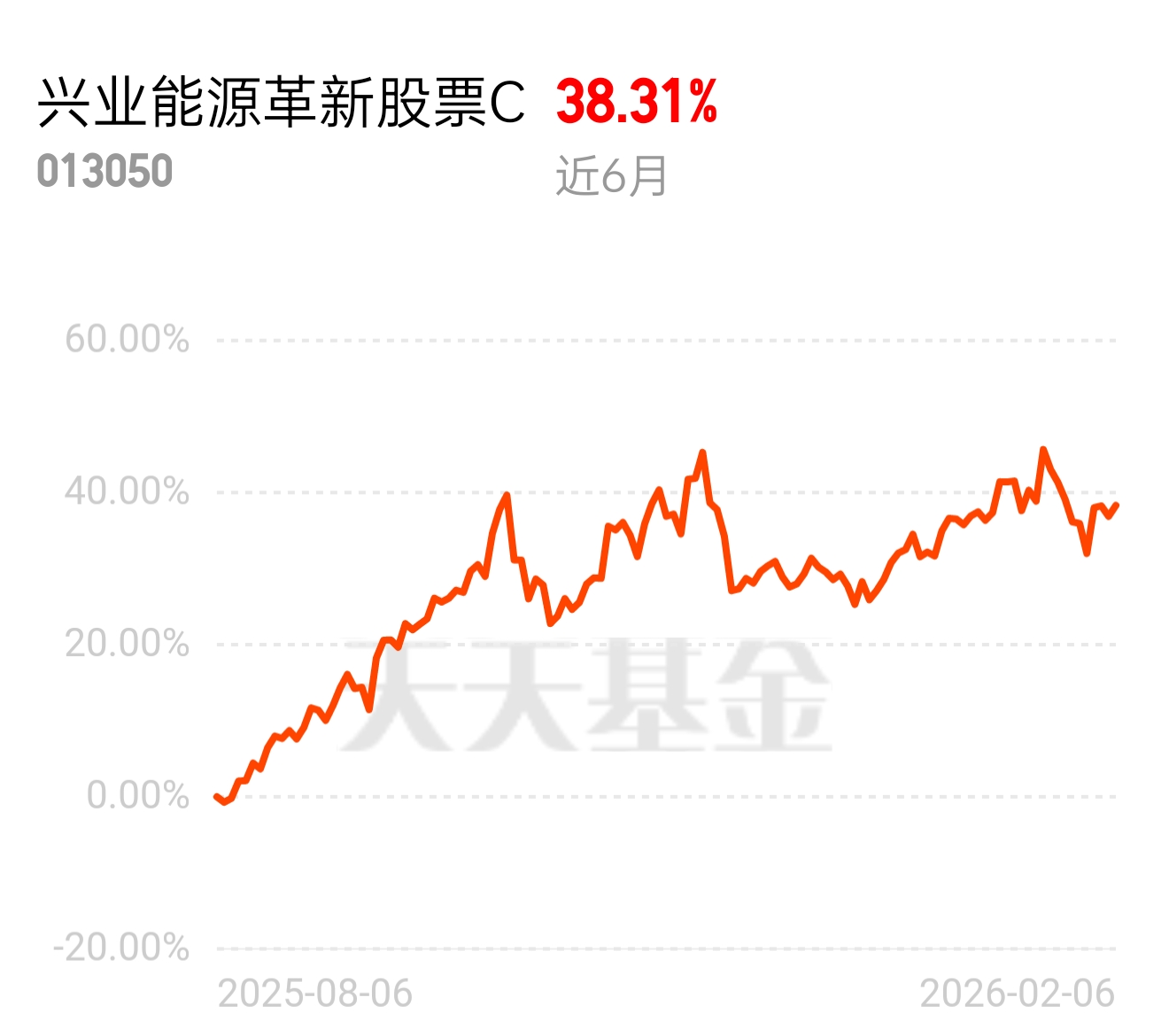 真没想到兴业能源今天红的这么稳,兴业能源革新股票C近6月38.31%,短期爆发力