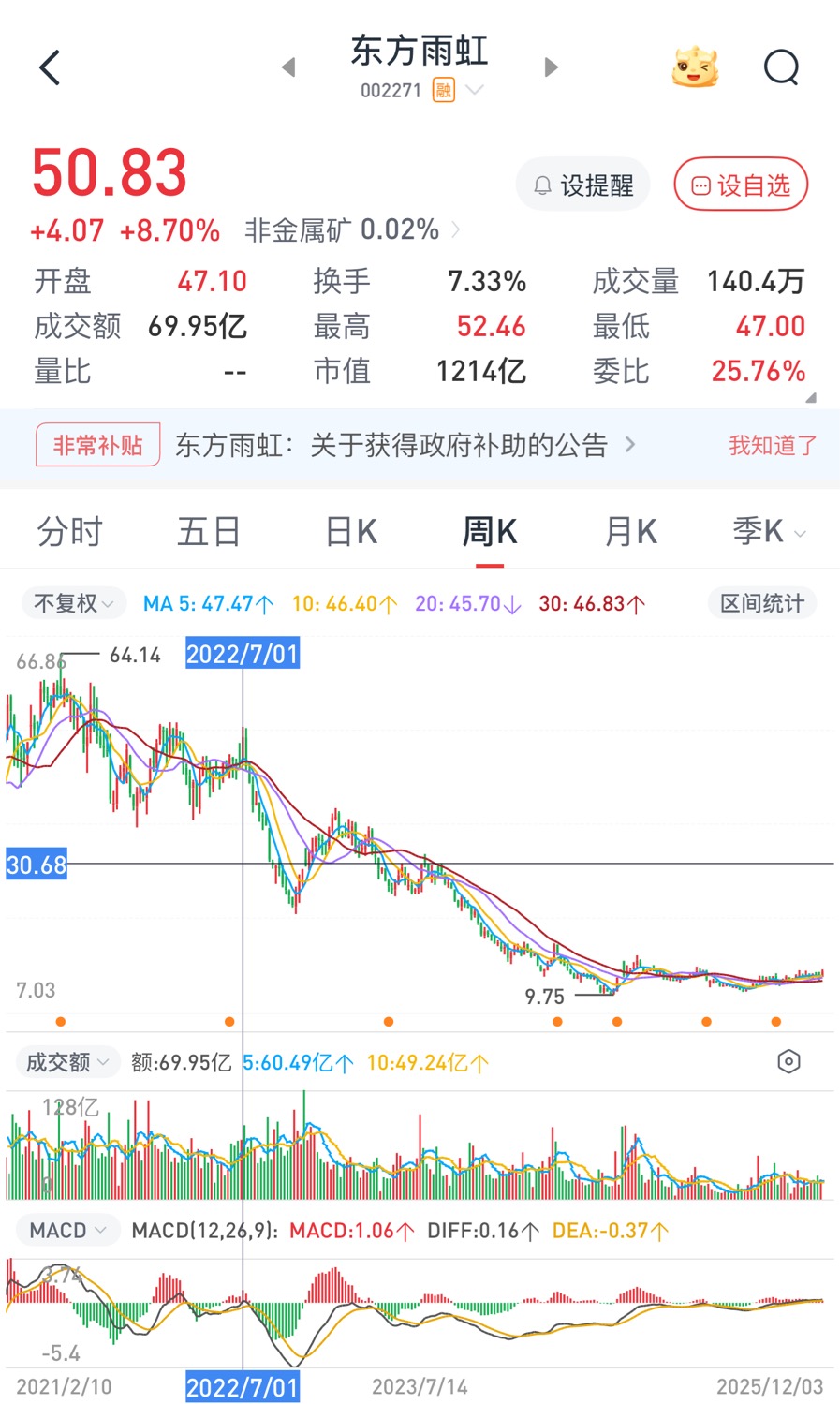 相当于买了50块钱的东方雨虹。涨270%,基金点数大概60%能回本。