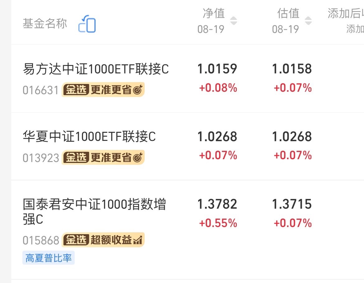 $华夏中证1000ETF发起式联接C$ 上涨0.07%