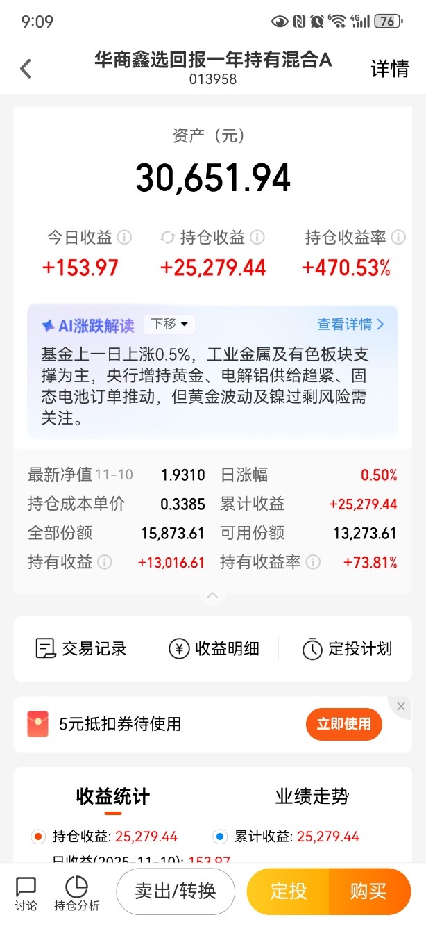 这是我买基金以来最好的一只基金,我会一直持有的,好卖低买