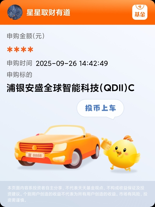 国庆将至,提前布局$浦银安盛全球智能科技(QDII)C$ 一波,美股基就属它给力,完全不限购,坐等吃肉#晒收益#