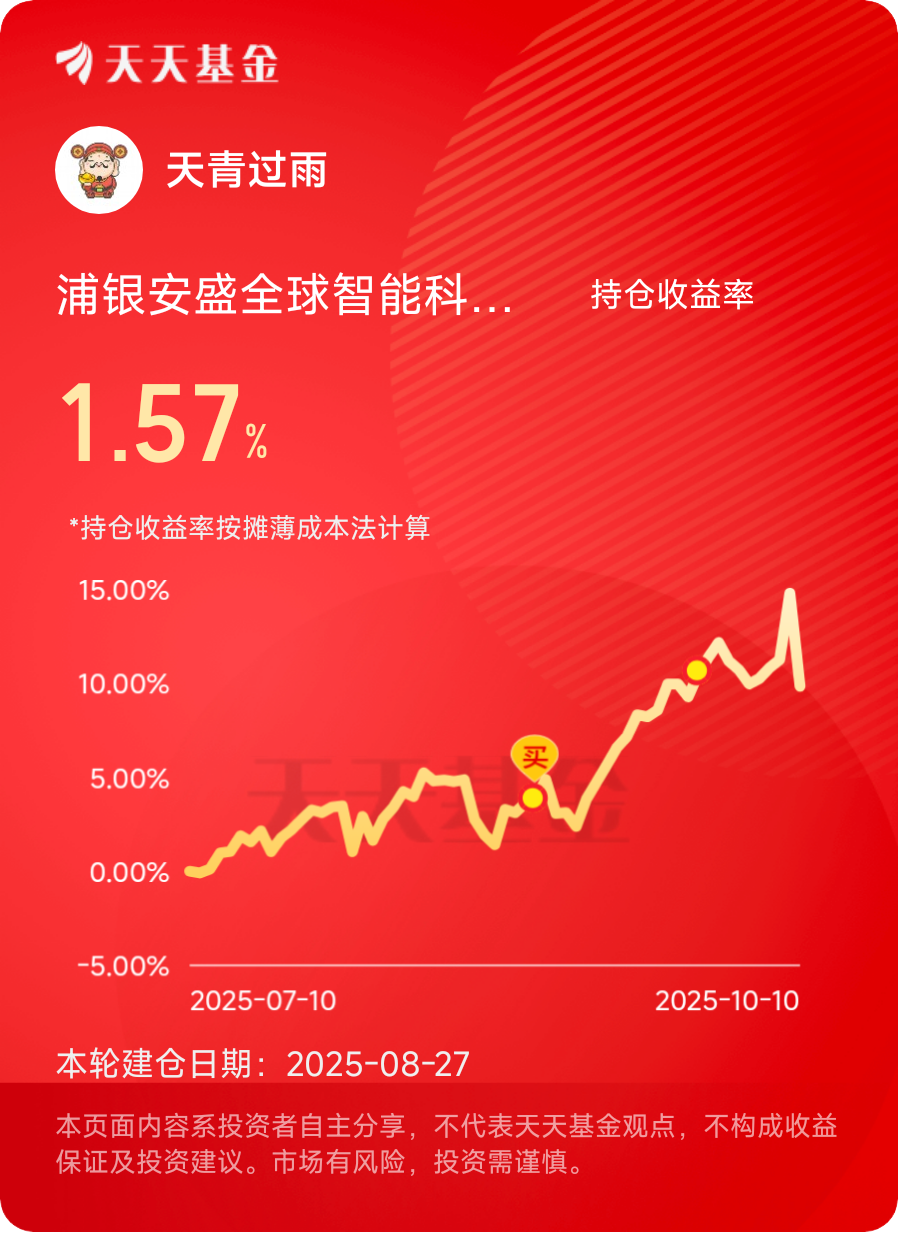 市场波动也是布局良机!美股科技长牛,浦银安盛全球智能科技不限购,投美股科技龙头,跟紧AI红利。$浦银安盛全球智能科技(QDII)C$ #晒收益#