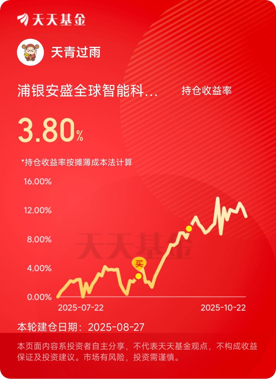 #科技热点摊开业啦# 关注美股长牛,目前科技主线,浦银安盛全球智能科技重仓美股科技龙头,近6月涨超40%跑赢纳指,而且还不限购!$浦银安盛全球智能科技(QDII)C$ #晒收益#
