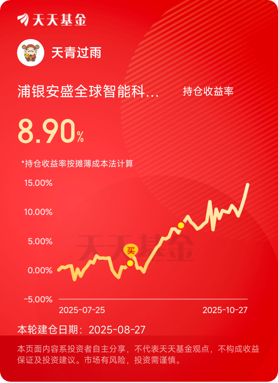 纳指走高行情向好!浦银安盛全球智能科技近1年涨29%+,覆盖海外AI全产业链,重仓美股科技龙头,不限购额度足$浦银安盛全球智能科技(QDII)C$ #晒收益#