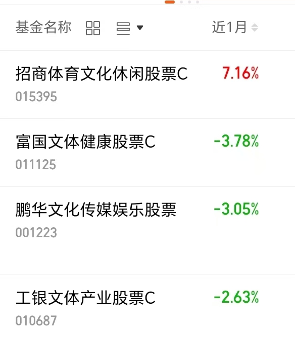 今天A股延续反弹失调,科技各细分领域的表现不错。近一个月来看, A股文体赛道整体偏强且分化,传媒板块在AI催化下延续反弹趋势,体育板块表现较为一般。$招商体育文化休闲股票C(OTCFUND|015395)$近一个月上涨了7.16%,表现挺不错的。