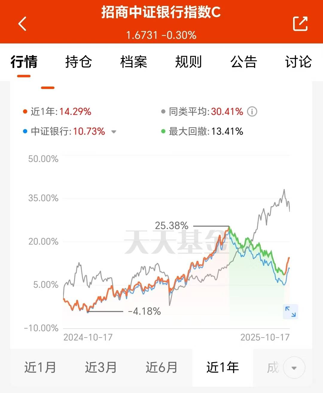 $招商中证银行指数C(OTCFUND|014028)$跟踪中证银行指数,目前估值上涨0.11%,近一周涨幅4.85%,业绩表现不错呢。而随着三季报良好表现,基本面企稳以及银行化险步入新阶段等利好因素影响,后续还是比较看好银行板块展开修复行情的,逢调整加仓是个不错的时机。