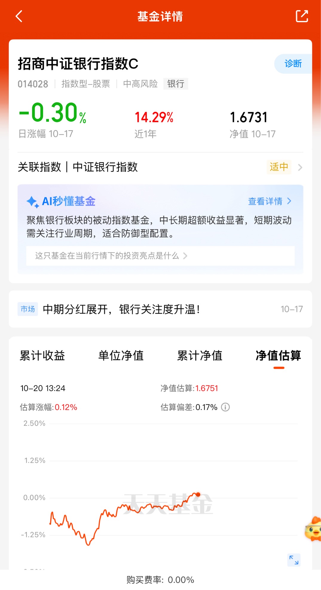 $招商中证银行指数C$