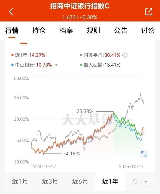 今天市场表现不错,主要指数都在上涨。我看银行板块最近有企稳回升的迹象,特别是三季报出来后,业绩趋于稳定。考虑到银行属于防御性比较强的板块,风险相对较低,我准备再加点$招商中证银行指数C$ 。现在政策环境对银行比较有利,监管政策逐步完善,可能会帮助银行优化资产负债结构。短期来看,银行股可能受益于政策支持出现反弹,长期投资价值也值得关注。在当前市场环境下,银行板块的稳定性让我觉得比较放心。