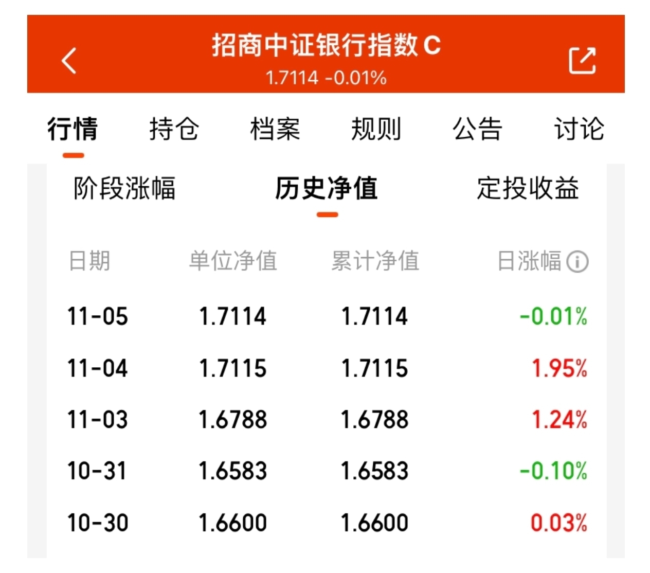今天市场继续上涨,大盘已经站上4000点了。我觉得短期可能会有些波动调整,这时候配置些稳健的品种比较合适。我关注到招商中证银行指数C(014028)最近表现不错,银行板块向来在市场震荡时比较抗跌,而且现在政策面也有支持。趁着这两天银行股稍有回调,我准备适当加仓。这个板块估值不高,分红也不错,在市场高位时能起到一定的防守作用。虽然涨得可能不会特别猛,但胜在稳当。