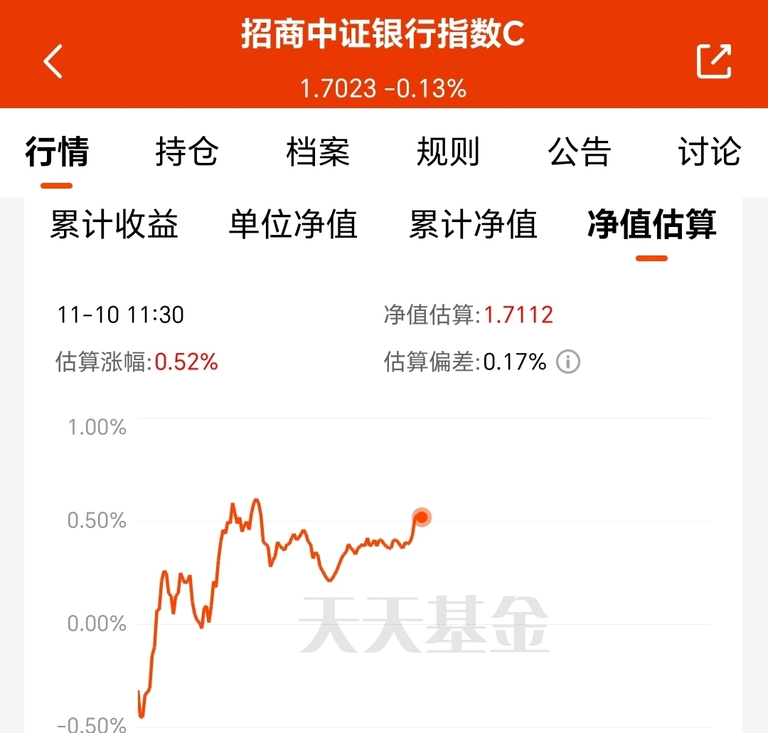 截至今日午间收盘,银行板块逆势上涨。$招商中证银行指数C$ 估值上涨0.52%。
