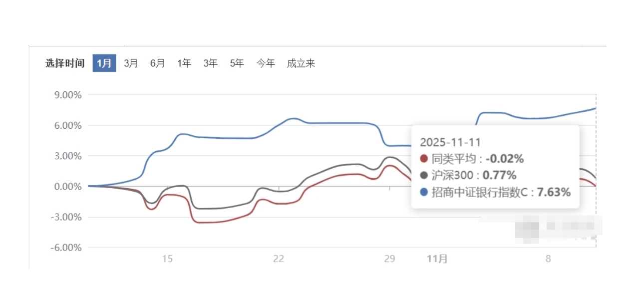最近市场热点切换得挺快,不过银行板块倒是走出了独立行情。招商中证银行指数C已经连续三个交易日上涨,今天预估涨幅也有1.01%。在当前这种震荡市里,银行股这种波动小、分红稳定的品种确实比较让人安心。我个人觉得,在市场方向还不明确的时候,适当配置些防御性强的资产是个不错的选择。等行情明朗了,再考虑调整持仓结构。