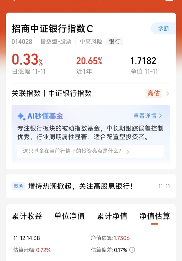 $招商中证银行指数C$ 这只聚焦银行的指数基金。持仓全部都是优质的银行资产,昨天逆市上涨0.33%,今天又是做到了稳步上涨。近一年涨幅20.65%。而且长期的表现做到了涨多跌少。目前市场整体还是不太稳定。我还是看好银行的上涨表现。#特斯拉拟建新厂生产Optimus人形机器人#