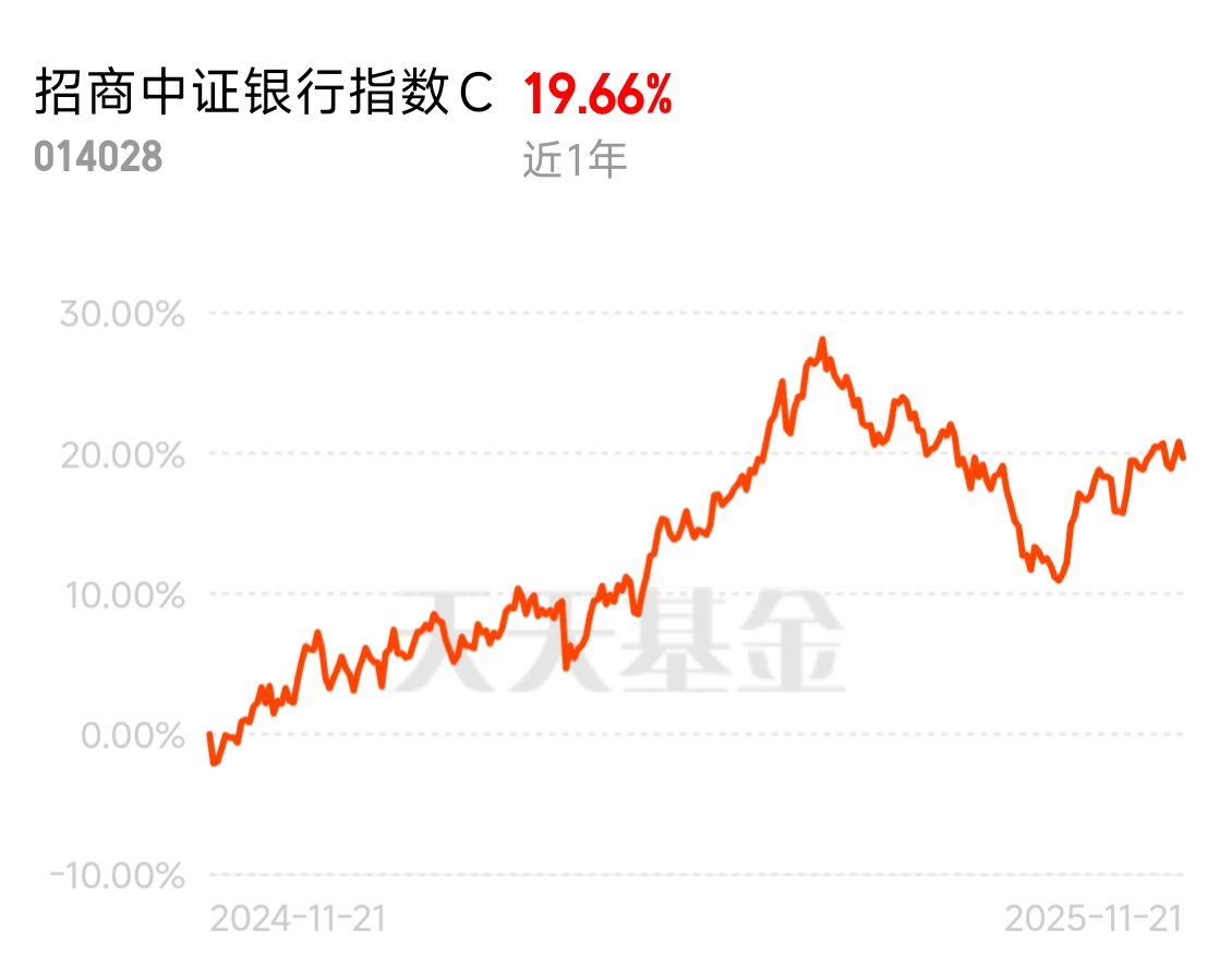 今天三大指数早盘小幅高开,但是目前全部收绿,今天的这个波动还是比较大的,在这种没有主线的行情下,我觉得高股息低估值的资产的确定性还是很不错的,就比如说银行板块,前面我也上了一点$招商中证银行指数C$ ,这个紧密跟做中证银行指数,近一年涨了19.66%,表现的还是非常不错的,而且它的低估值也是更加的吸引资金的关注,我觉得这个位置安全垫很高$招商中证银行指数C$