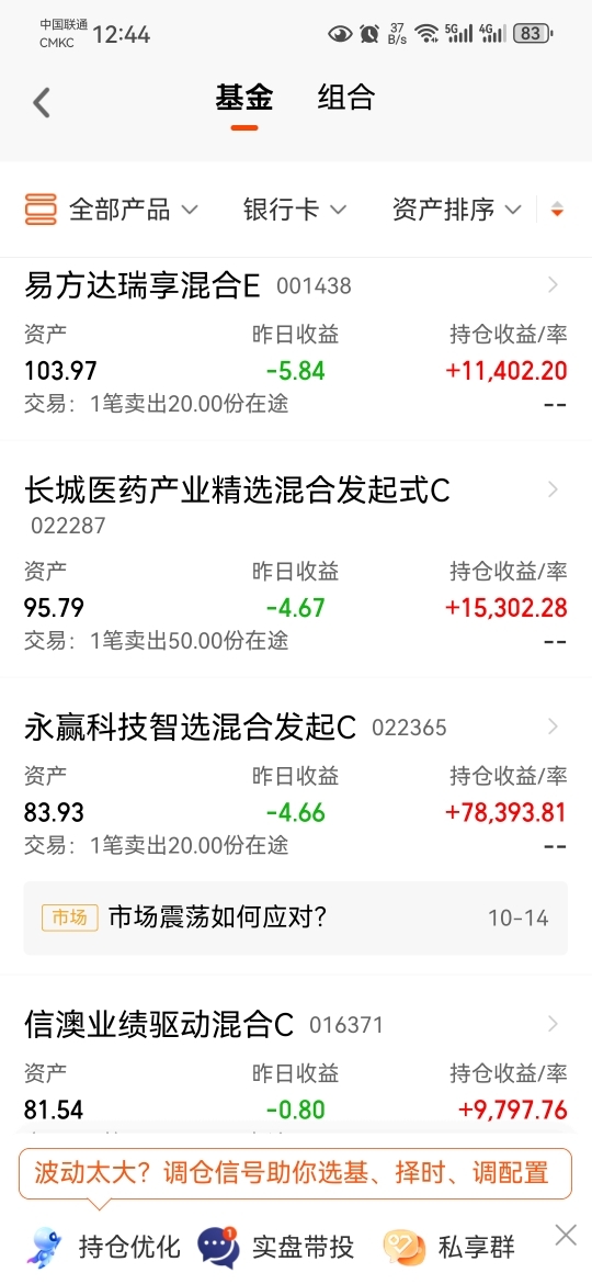 今天指数小幅上涨,成交量大幅萎缩3985亿。科技板反弹必须清仓了,我昨天换掉了一半,剩下的明天就全卖了,提前和大家说一下。昨天指数应该必须上涨,结果给大跌了,让我失去了信心。主要是昨天的科技跌幅无法忍受。所以我肯定不留了。今天医药小幅上涨,别的科技板块也是小涨微红。通过这三天的大幅调整,很多科技跌幅达到了10个点左右,不可能创新高了,不要有任何的幻想,我拿着的好几只都是持续创新高的,结果这三天也是大跌,都不给反弹的机会跑路。大家仔细观察一下,很多基金近一周,近一个月全是亏损的,过段时间肯定会近三个月,近六个月照样也是亏损的,看看四季度是什么主线吧,希望任何人不要把盈利回吐出去了。行情好的时候近一个月全是大幅盈利的,在看看目前全是亏损的了,所以我选择轻仓先观望一段时间了。我新换的两只涨跌幅很小,肯定不会亏损什么。先观察一下有没有新的主线就行了。