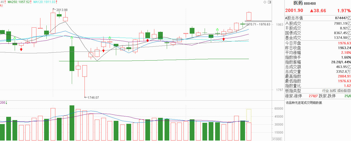 医药板块:红三兵+长下影探底,今天中阳线太猛!要启动涨势吗?