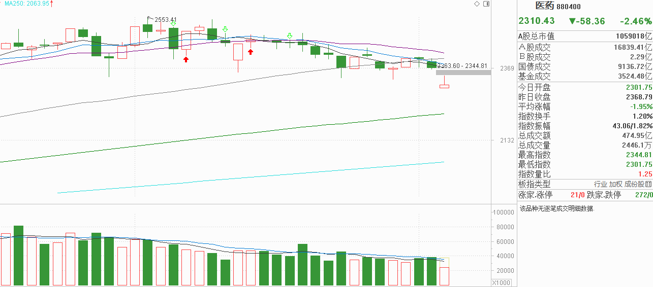 家人们,都给我听清楚了!医药上周五小阴调整走得不好,主要原因是60天线失守了,5天线、10天线均下穿60天线,构成了短期内的强阻力位,虽然医药自8月震荡后一直横向波动,感觉近一个月阳线力度过少,阴线频率更多一些,虽然中阴线与中阳线力量相当,但连续小阴线也是资金流出的表现,这情况反映在上周五就已经接近箱体破位了。周末有利空消息打击,医药今天大幅破位低开,虽然低开高走,但还是没有能力回到8月28号下影线的低点,加上有一个比较大的跳空缺口,严格来看这就是向下破位的表现。创新药的情况也好不到那里去,无论是题材还是一般板块,我觉得当下主力没有做出维护板块的义务,作为散户,虽然知道医药大有可为,但医药总是大有可为,真相信这个大逻辑,过去3年就得吃大亏。我的观点是如果没有发现主力资金的护盘,在医药连续上涨横向震荡后选择破位下行,就应该开始看空医药了。都知道它长期潜力大;但真要相信这个大逻辑,过去这三四年里,得吃得多惨啊!看到医药在连续上涨或者横盘震荡之后,一旦出现像现在这样破位下行的信号,特别是在没有发现主力资金明显护盘的情况下,你就该开始认真看空了!别再傻傻地期待什么奇迹发生了!