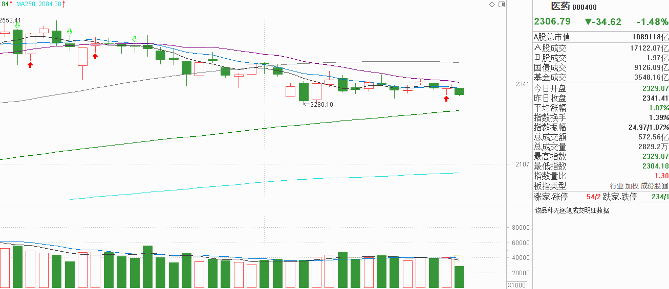 医药:探底回升后重陷泥潭?20天线压力重重,跌无可跌或成新常态?