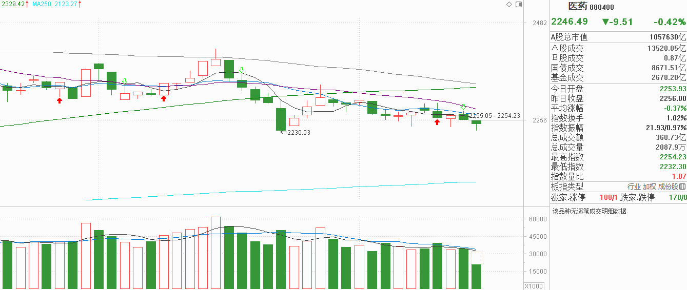 医药:遭遇10天线镇压!探底回升无力,筹码持续流出趋势恐难打破