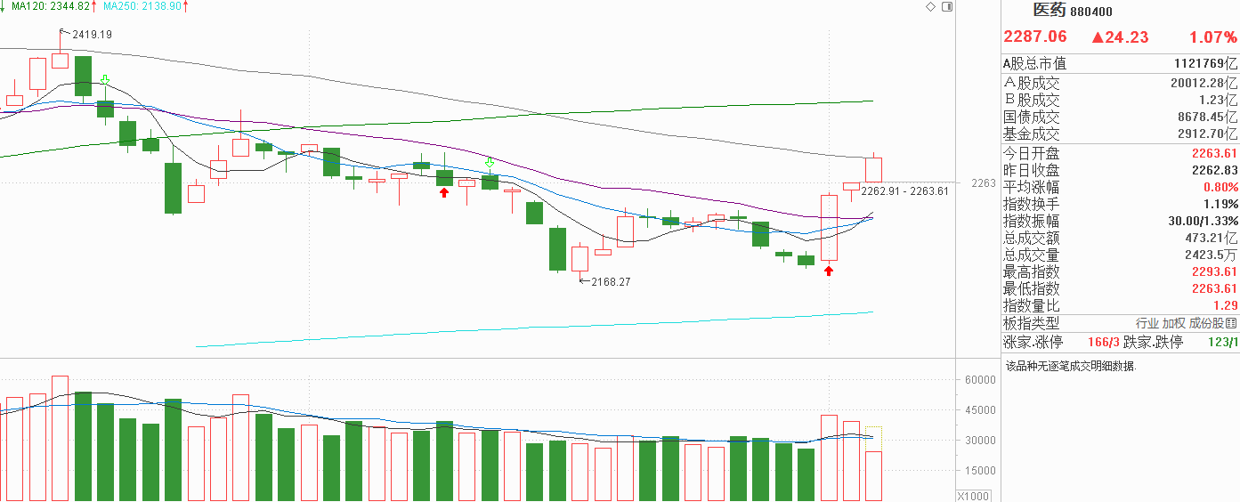医药触底反弹?三连阳回到60天线但力度不足!是企稳还是回调前兆