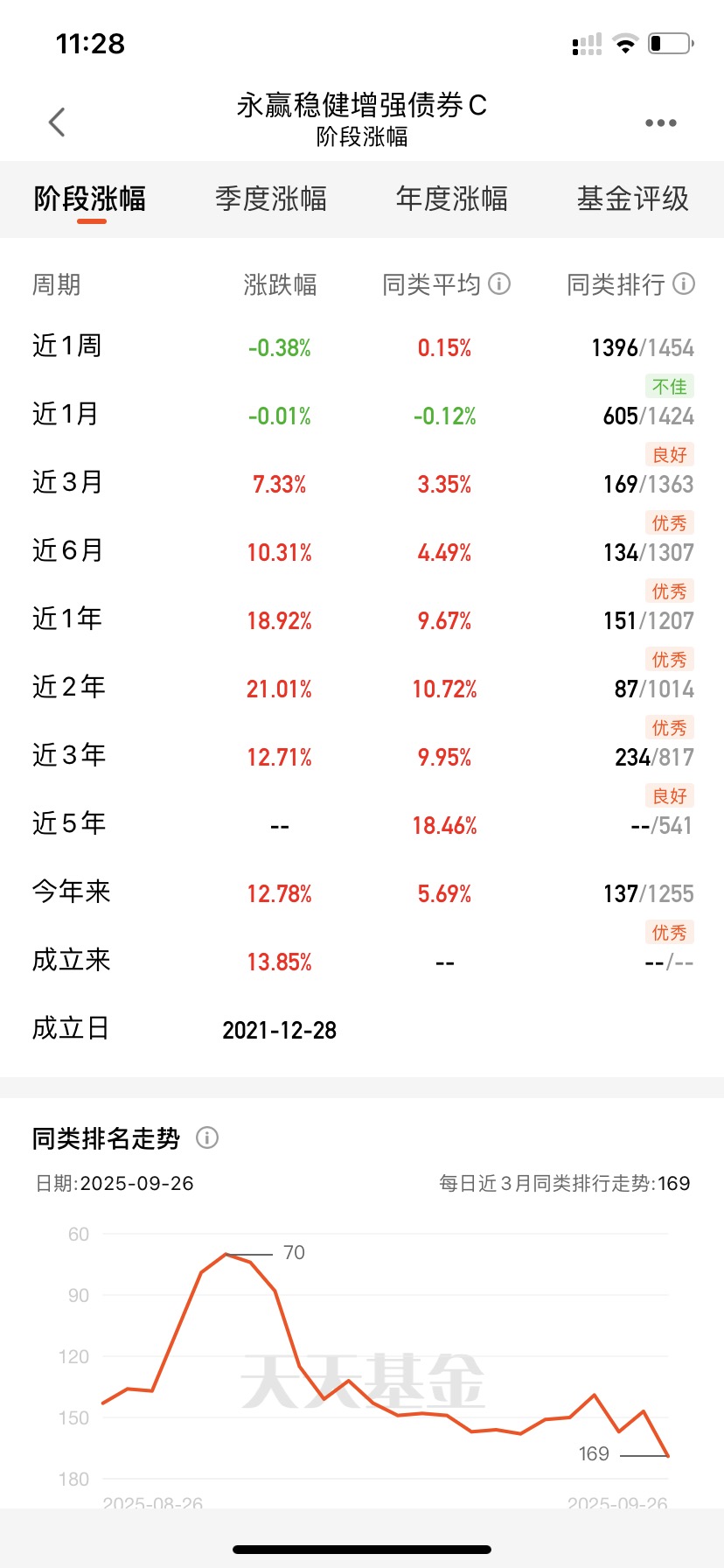 $永赢稳健增强债券C$ 是股债混合偏债的固收加基金,主要以信用债为主,利率债波段增厚收益,加上少量的股票和可转债来冲收益,这样的配置策略可以说进可攻退可守,这里近三个月733个蛋,近一年1892个蛋,业绩表现还是很亮眼的,目前估值低位,值得期待了!#老登股VS小登股!业内大佬“激辩”#