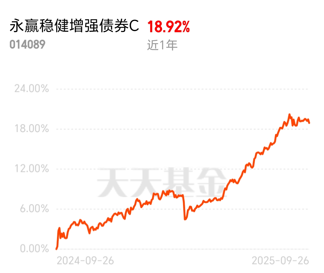$永赢稳健增强债券C$ 以高等级信用债为主,搭配利率债优化久期,形成稳健收益基础。权益部分精选低估值、高股息标的,辅以可转债增强弹性。看业绩,近三个月收733枚蛋,近六个月1031枚蛋,近1年收1892枚蛋,长期短期表现不错,看来,基金经理的资产配置攻守兼备。$永赢稳健增强债券C$