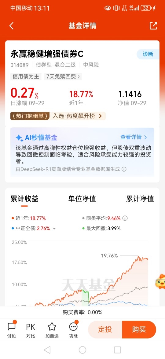 $永赢稳健增强债券C$是一只固收加产品,挺适合稳健布局稳扎稳打,昨日产下27蛋,