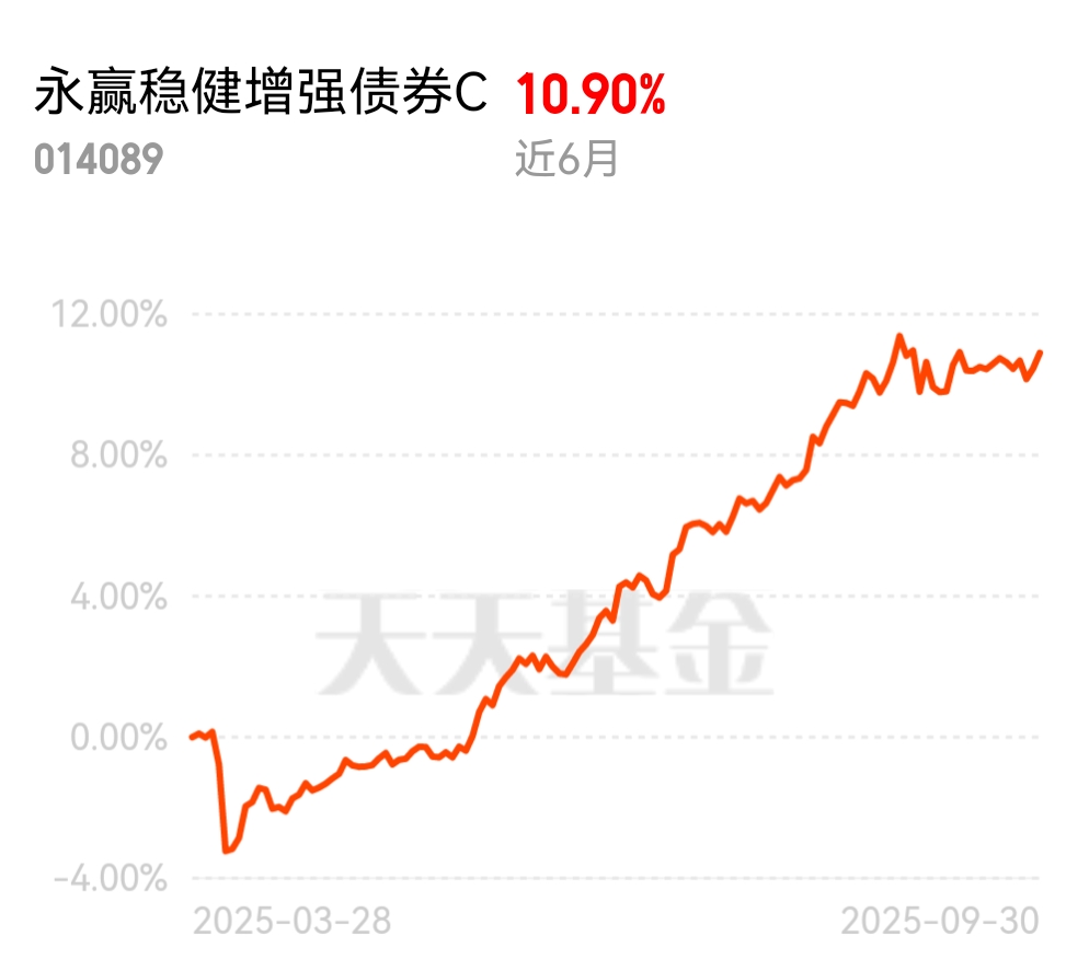 这支基金稳步向上,波动小,越久越香$永赢稳健增强债券C$收益很稳定。