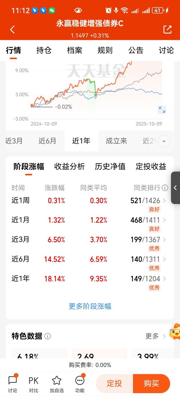 $永赢稳健增强债券C$ 昨天喜收31个蛋耶,已经连续三天上涨。产品以债基打底+权益增强为核心策略的黄金组合,采用债打底、股增强的模式,各阶段业绩表现突出,近一个月收132个蛋,近三个月收650个蛋,近六个月收1452个蛋,弹性不错耶!心动不如行动起来咯!#国际金价史上首次升破4000美元大关#