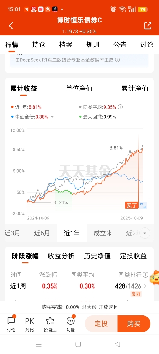股债双强的时候,就是固收+表演的时刻,$博时恒乐债券A$又爆蛋了,昨天一天就拿下36个蛋,一周累计攒蛋六七十个,近三个月涨幅直追4%,一年下来收益率已有9%,收益一直领先同类。这只基金的债券组合太会选了,重仓的都是高评级品种,信用债以央企债为主,利率债里国债占比不低,这种配置在当前信用环境下违约风险极低,安全感拉满。最近银行间债券市场境外机构一站式开户平台9月上线后,外资开始加仓中国高等级债券,它持有的利率债作为核心资产,吸引力越来越强,估值上升空间不小。同时存款利率调降后,银行、保险这些机构都在加大债券配置,这只基的持仓正好能承接住需求,价格自然稳中有升。最惊艳的是其权益仓的神操作,没贪多但选得极准。基金经理布局了估值合理的金融和传媒股,像近期受益于政策宽松的券商股,还有业绩预增的影视标的,昨天全都涨了,这部分收益直接让它跑赢同类。基金经理经验丰富,对债市和股市的节奏把握特别准,既能靠债券吃稳息,又能靠股票赚弹性。#存储芯片掀涨价潮!行业或迎超级周期#